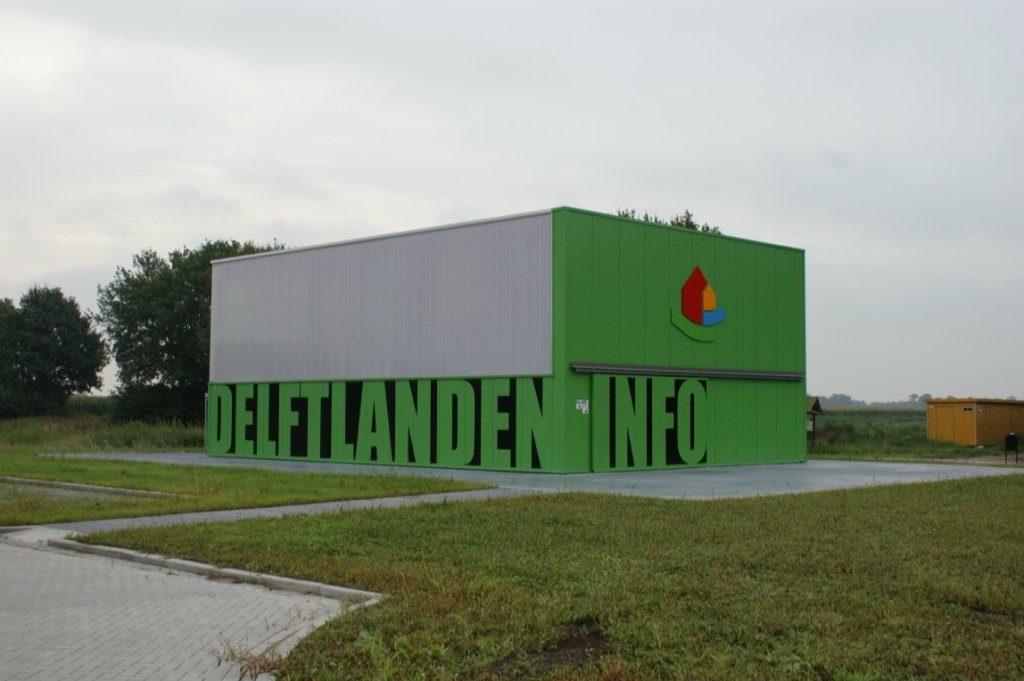 Het gebouw is ontworpen als een knal groene “container” waarop met grote letters is aangegeven dat men in het gebouw info kan verkrijgen over Delftlanden. Op de begane grond is een grote ruimte gerealiseerd waar presentaties en informatie over Delftlanden wordt getoond. Daarnaast zijn hier klein voorzieningen als een toiletgroep, berging annex technische ruimte en een pantry opgenomen. Op de eerste verdieping bevinden zich kantoor- en vergaderruimten.